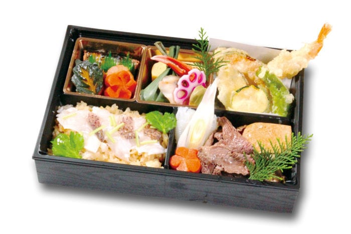 【内容】 鯛の炊き込みご飯・特選牛すき焼き・季節の天婦羅・季節の炊き合わせ・カニ爪・だし巻き・季節の焼き魚 等